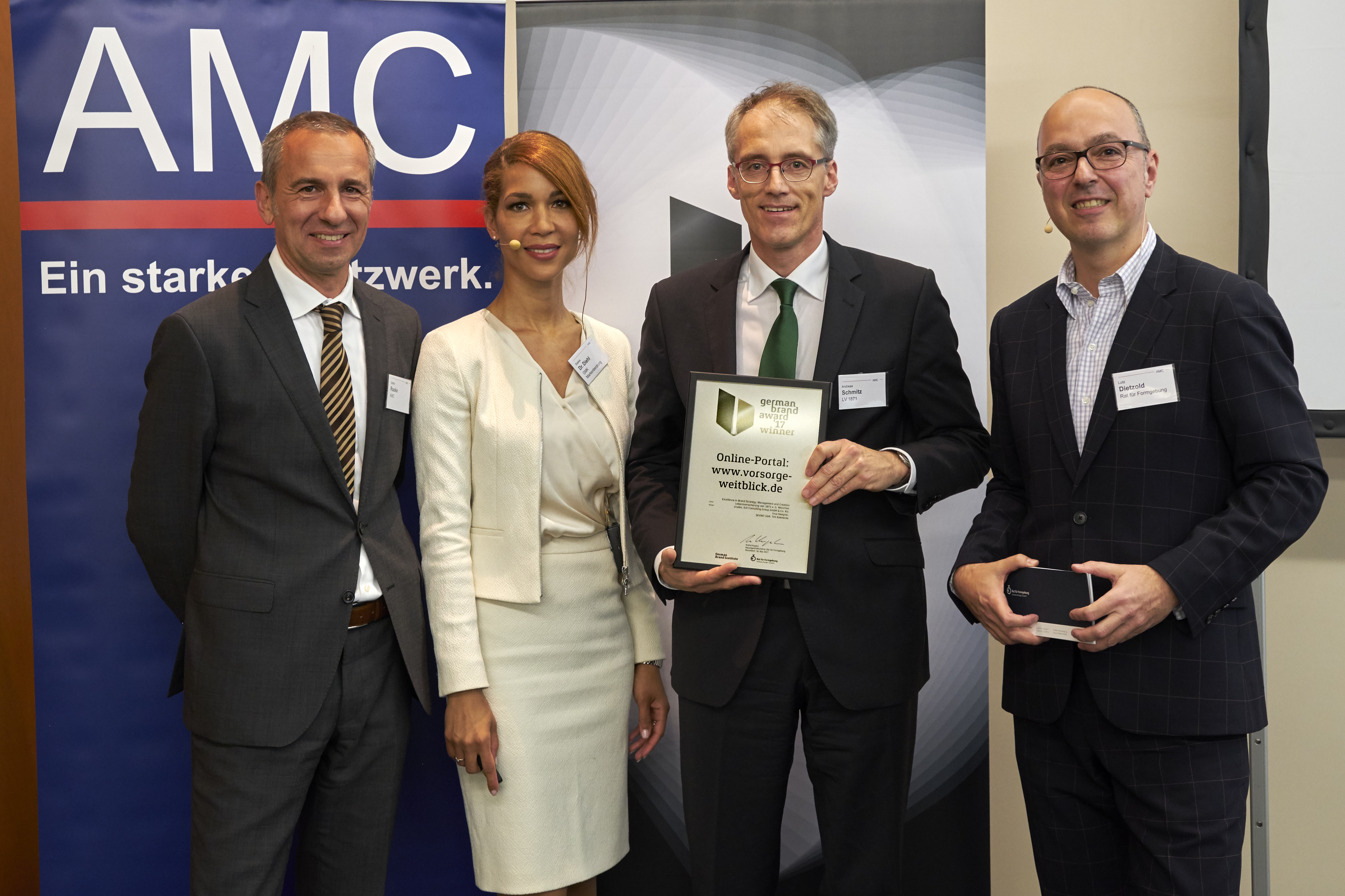 Auf dem Frühjahrsmeeting des AMC Branchennetzwerks der Assekuranz wurde erstmalig der German Brand Award Special: Versicherungen 2017 vergeben. Mit dieser Ausrichtung stehen die Bemühungen ausgewählter deutscher Versicherer im Rahmen ihrer Markenführung im Fokus.