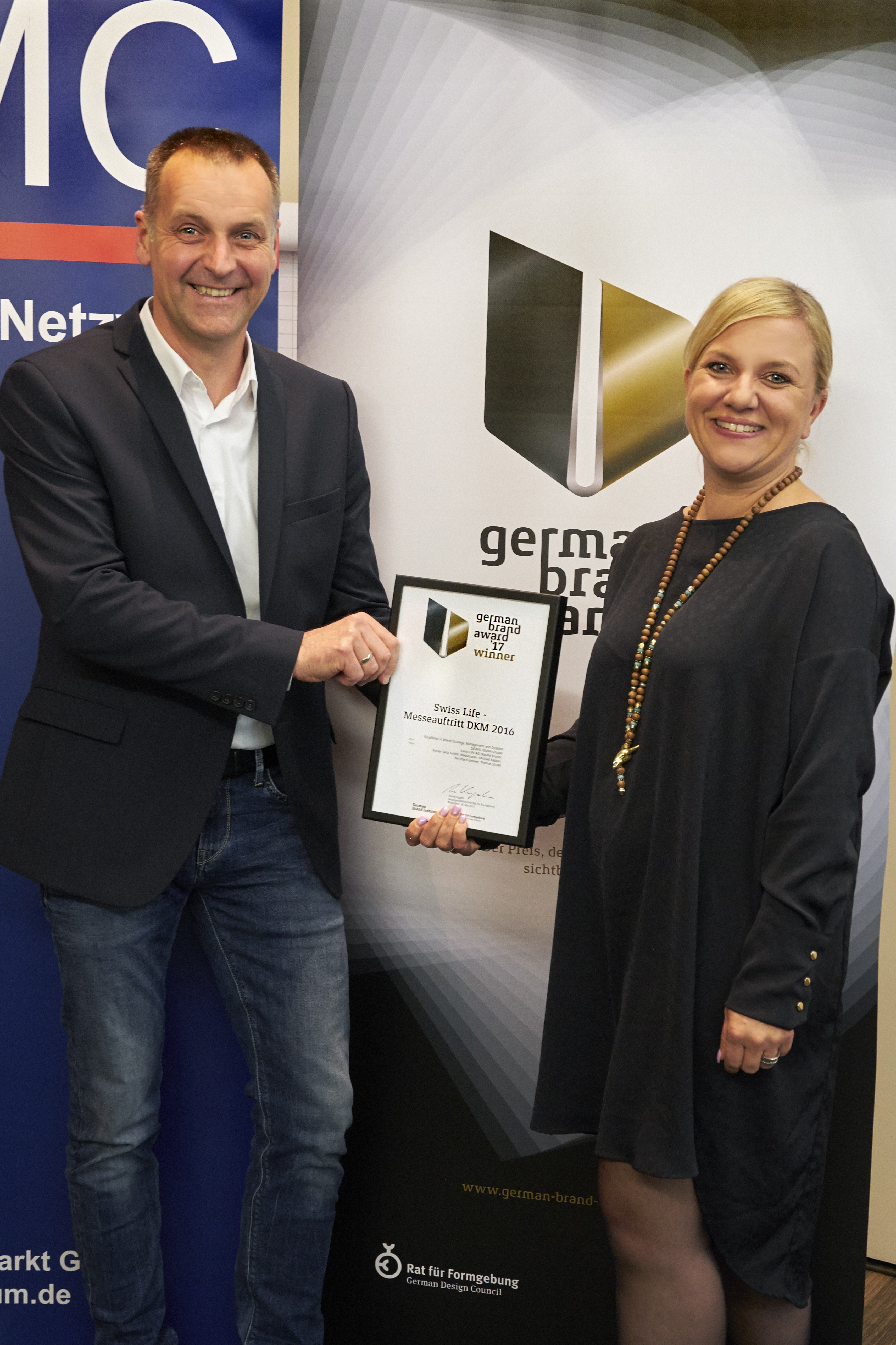 Weitere Auszeichungen gingen an ERGO, VKB und Zurich, die jedoch aus Termingründen ihre Auszeichungen nicht persönlich entgegenehmen konnten. Die Preisvergabe wurde moderiert von Dr. Saskia Diehl, Geschäftsführerin der GMK Markenberatung und Lutz Dietzold, Geschäftsführer des Rat für Formgebung. Weitere Informationen zu den ausgezeichneten Projekten hier: http://www.german-brand-award.com/versicherungsspezial.html
